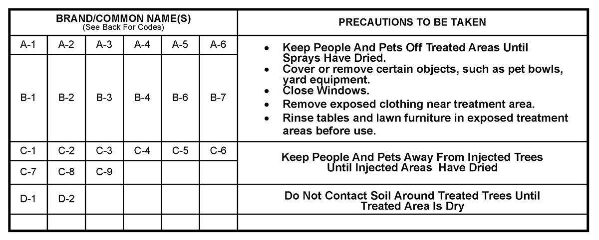 You can review all the pesticide labels and additional information for any pesticides used on your property by clicking on the link below for ‘Pesticide Information and Product Labels’